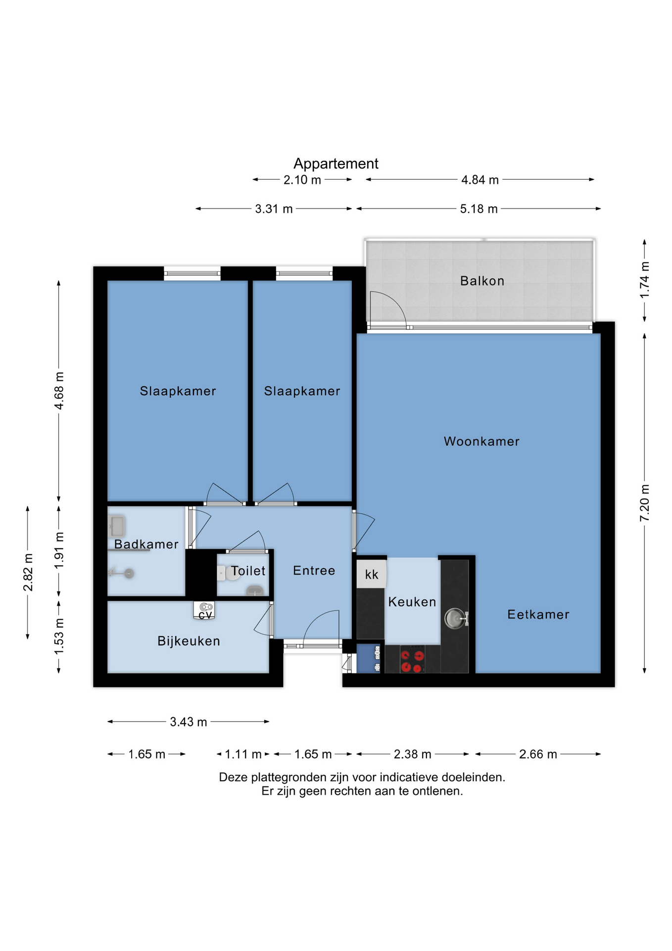Het appartement beschikt over een ruim balkon op het Oosten.