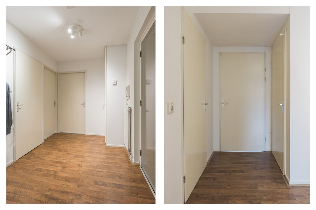 Ruime ontvangsthal voorzien van een mooie laminaatvloer, doorgelegd in nagenoeg het gehele appartement met uitzondering van de natte ruimtes en de inpandige berging.