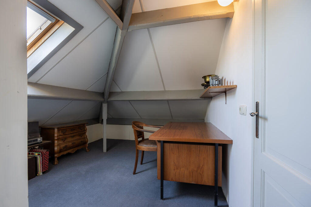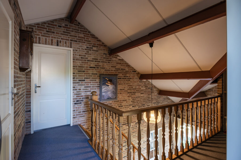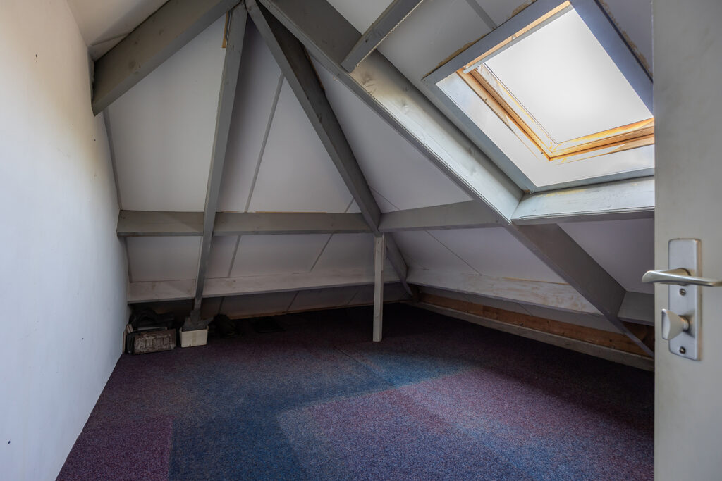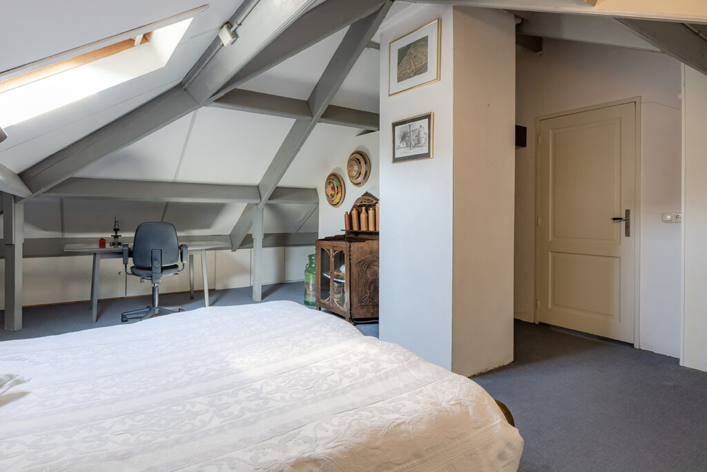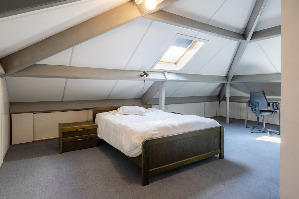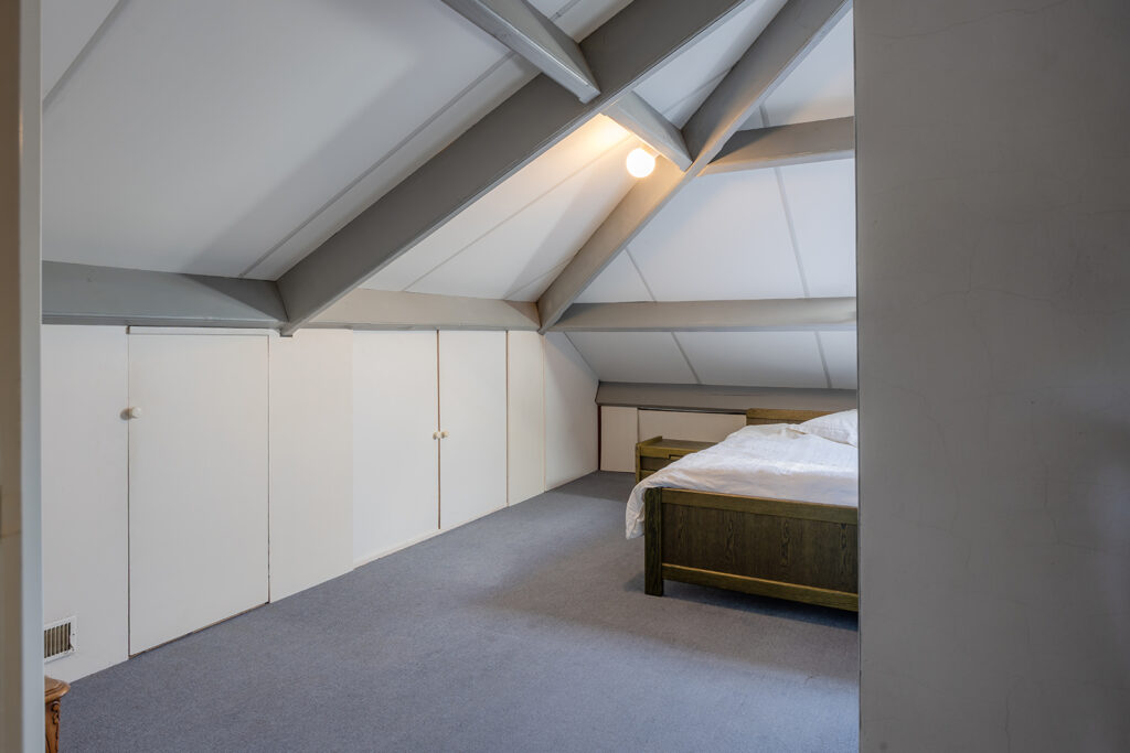 Middels hardhouten trap vanuit de hal; overloop met aansluitend 2 ruime speels ingedeelde slaapkamers welke beide voorzien zijn van vloerbedekking. Onder de schuine kap bevindt zich veel bergruimte.