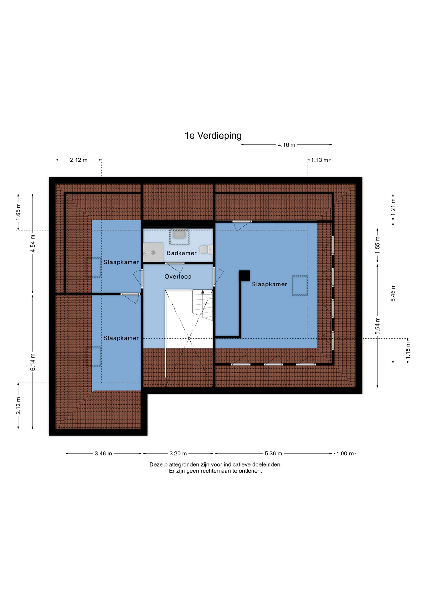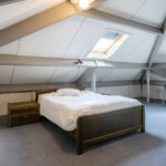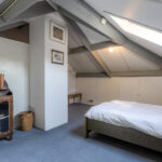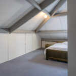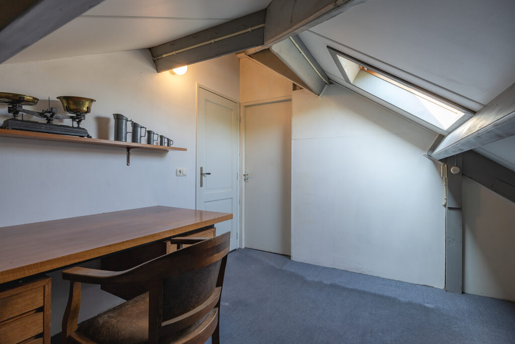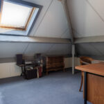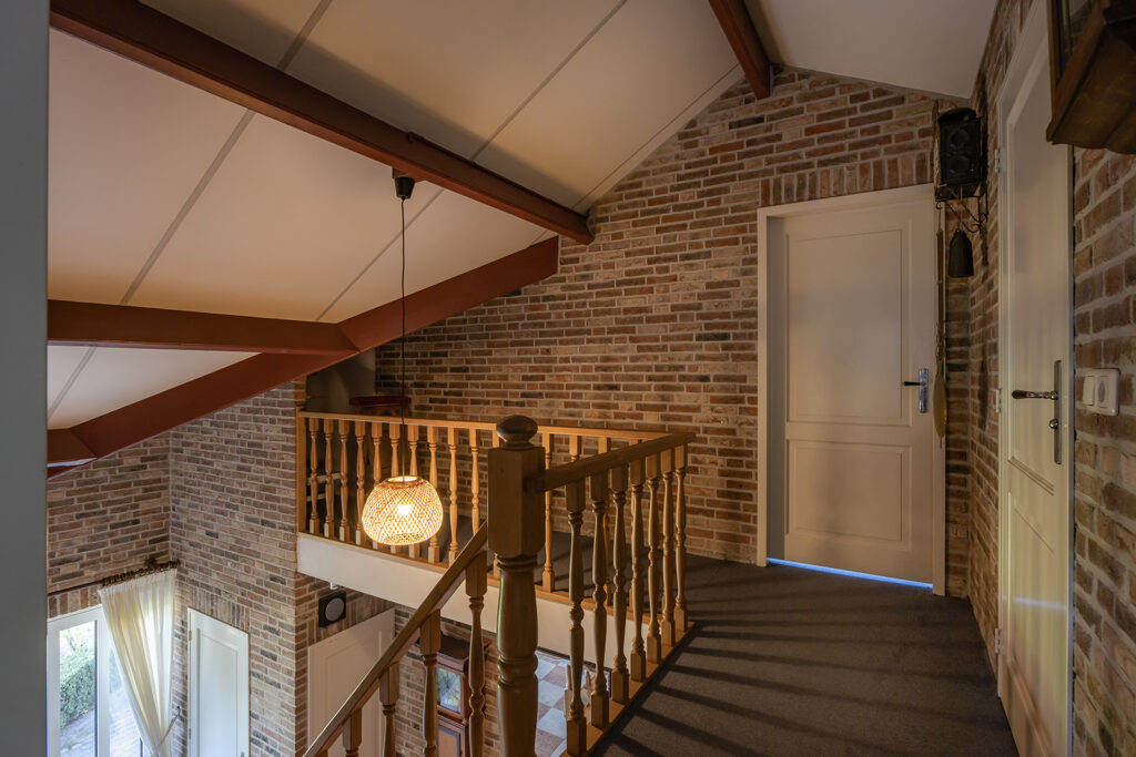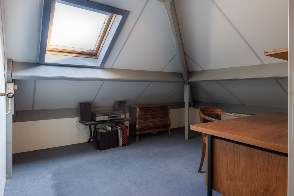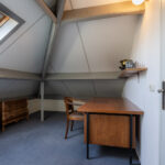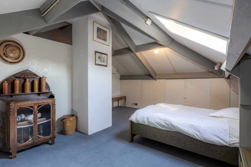 Middels hardhouten trap vanuit de hal; overloop met aansluitend 2 ruime speels ingedeelde slaapkamers welke beide voorzien zijn van vloerbedekking. Onder de schuine kap bevindt zich veel bergruimte.