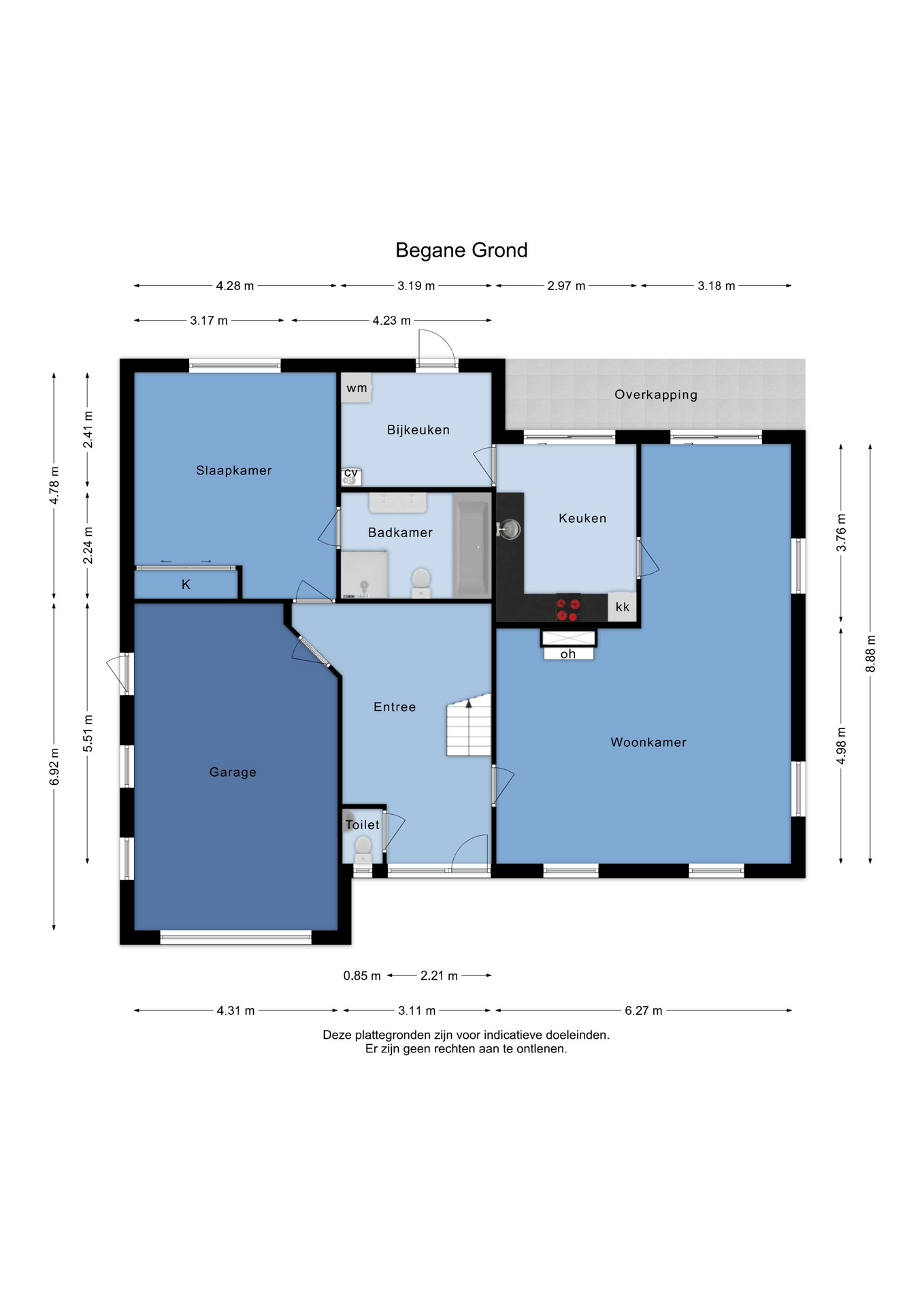 Via de hal is er eveneens toegang tot de inpandige riante garage. Dit is niet alleen een garage waar de auto geparkeerd kan worden…er is nl méér dan voldoende ruimte voor een hobby of bijvoorbeeld een werkbank etc. Vanuit de garage is een loopdeur in de zijgevel naar de zijzijde van de woning. De garage is voorzien van een elektrische sectional deur met een afstandsbediening.
