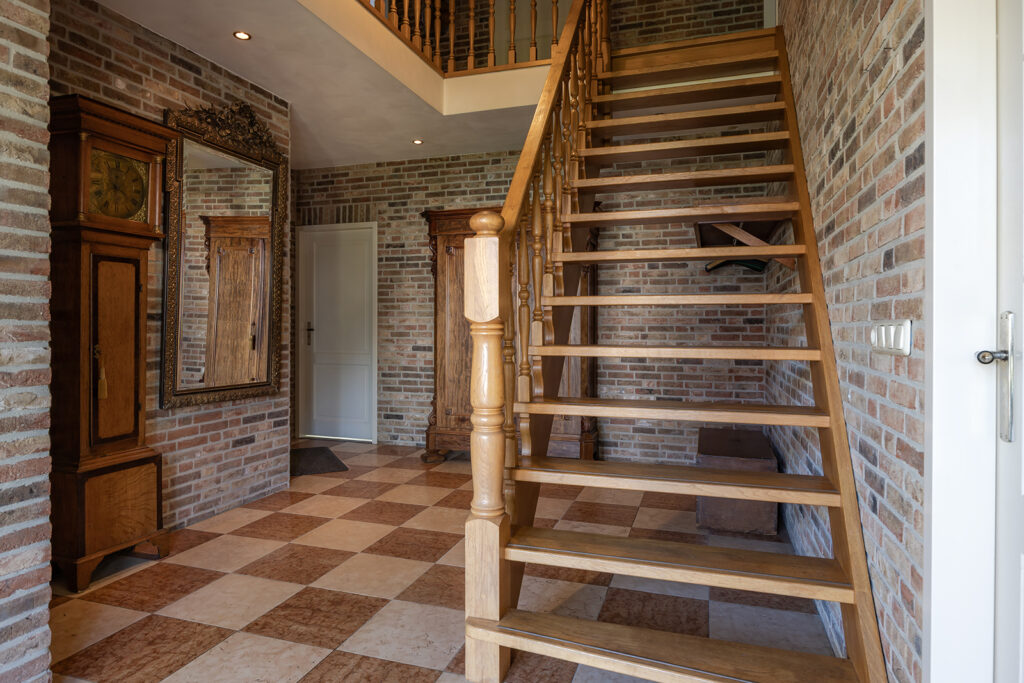 Entree; ruime hal met vide voorzien van een tegelvloer. Wanden zijn uitgevoerd in schoonmetselwerk. Hardhouten trap naar 1e verdieping. Meterkast met 8 groepen.