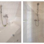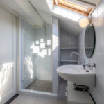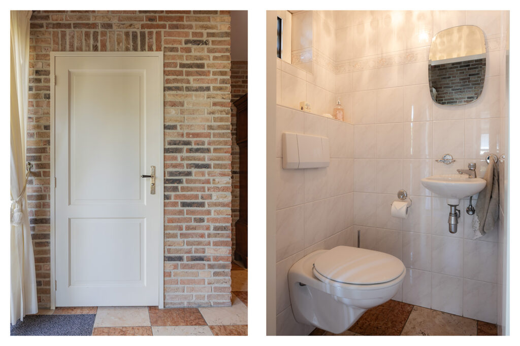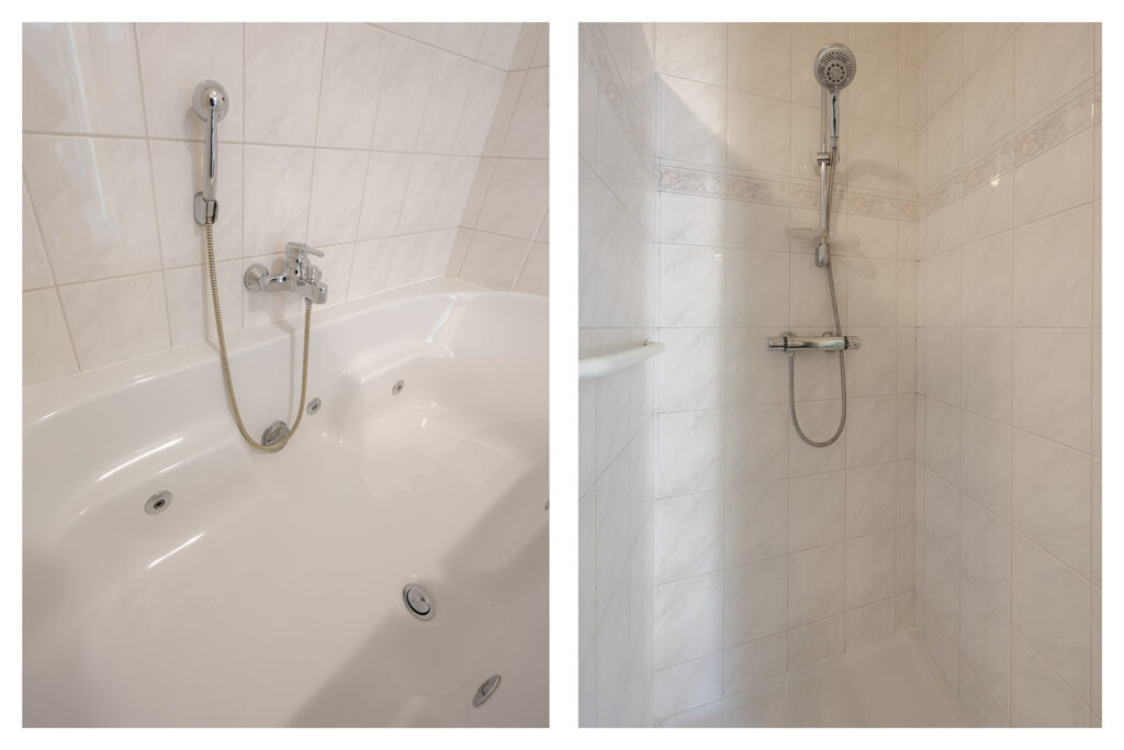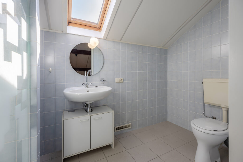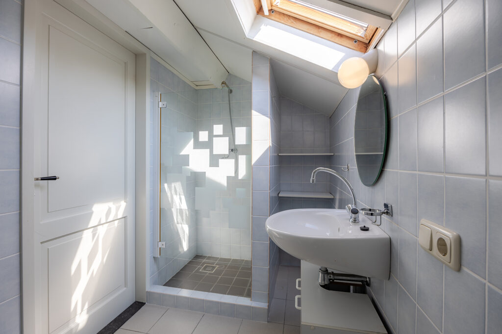 Tussen de slaapkamers is bevindt zich de 2e betegelde badkamer met douche, 3e toilet en wastafel.