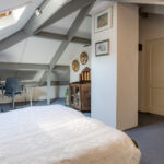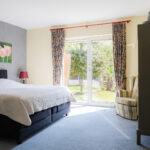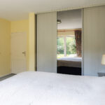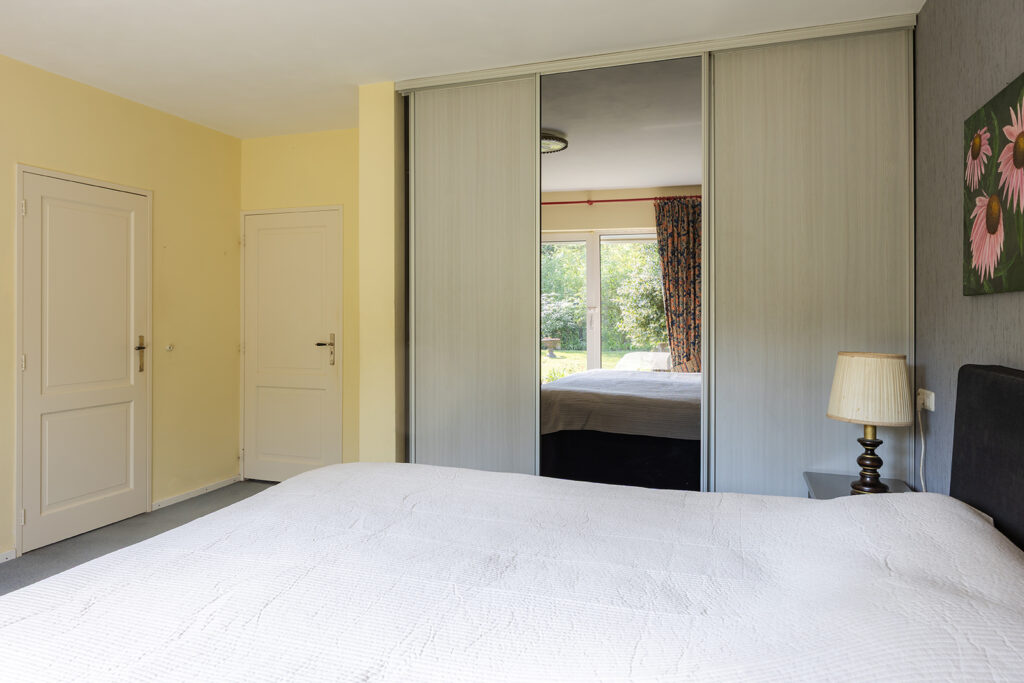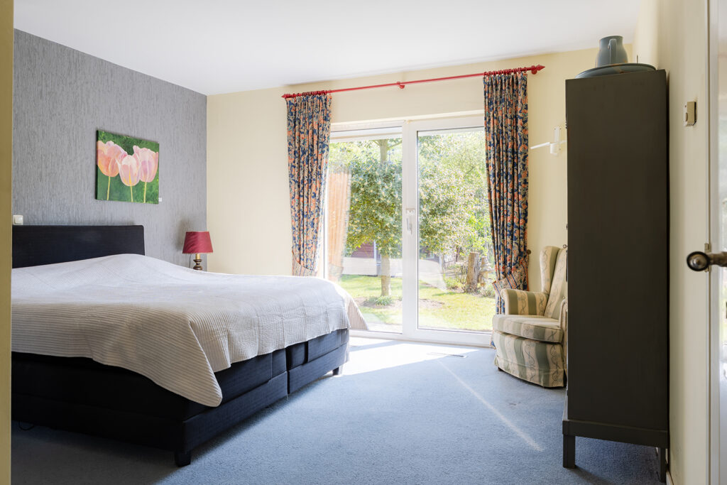 Eveneens via de hal is de riante masterbedroom bereikbaar. Een mooie tuingerichte slaapkamer met aansluitend een betegelde badkamer. De tuin is toegankelijk via een schuifpui.