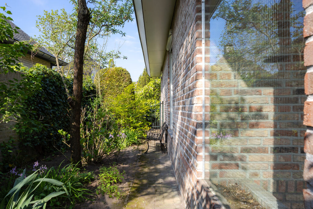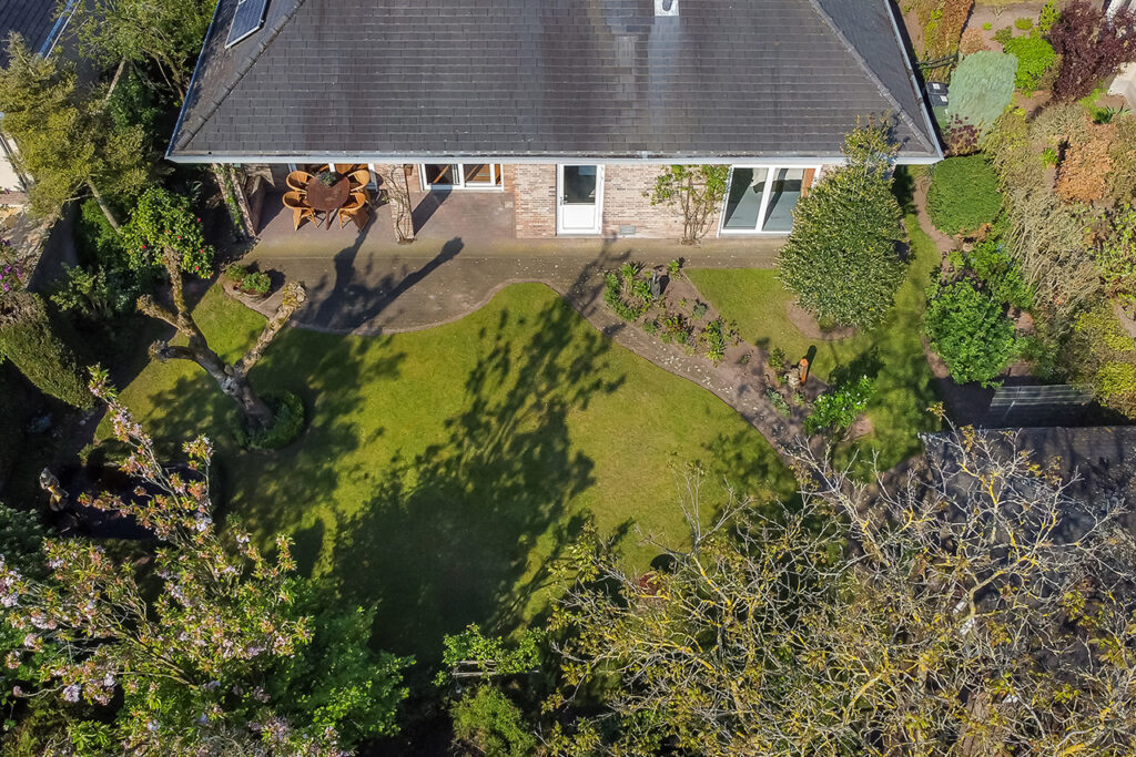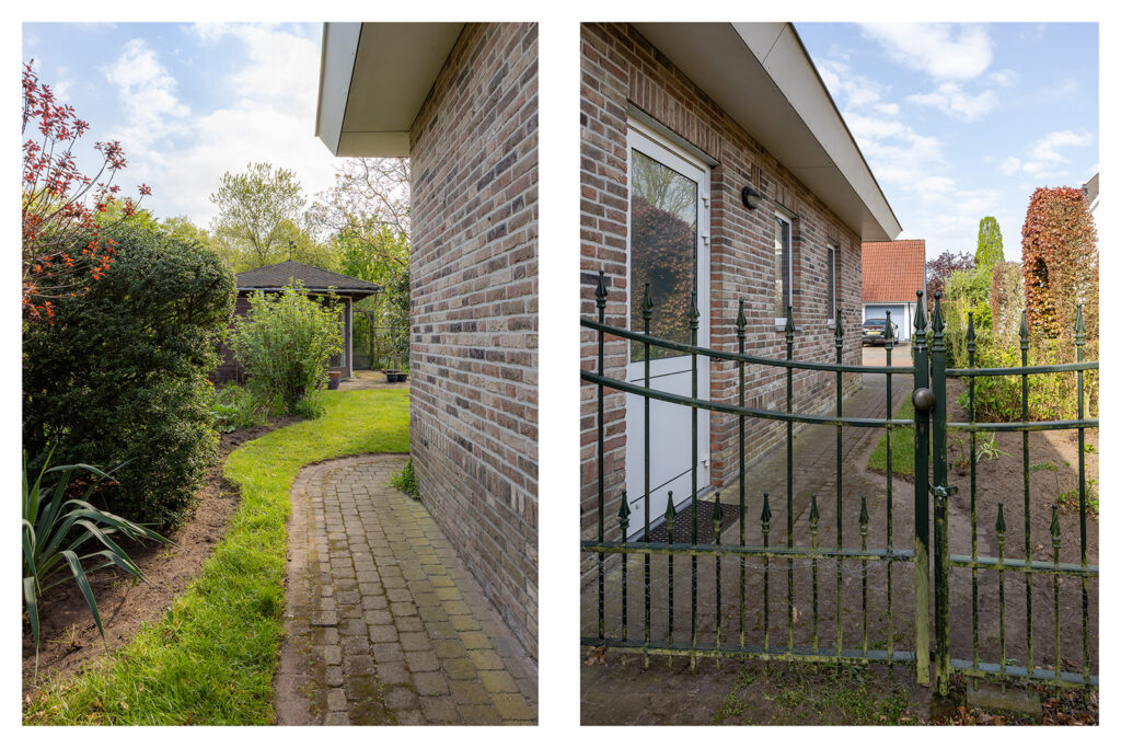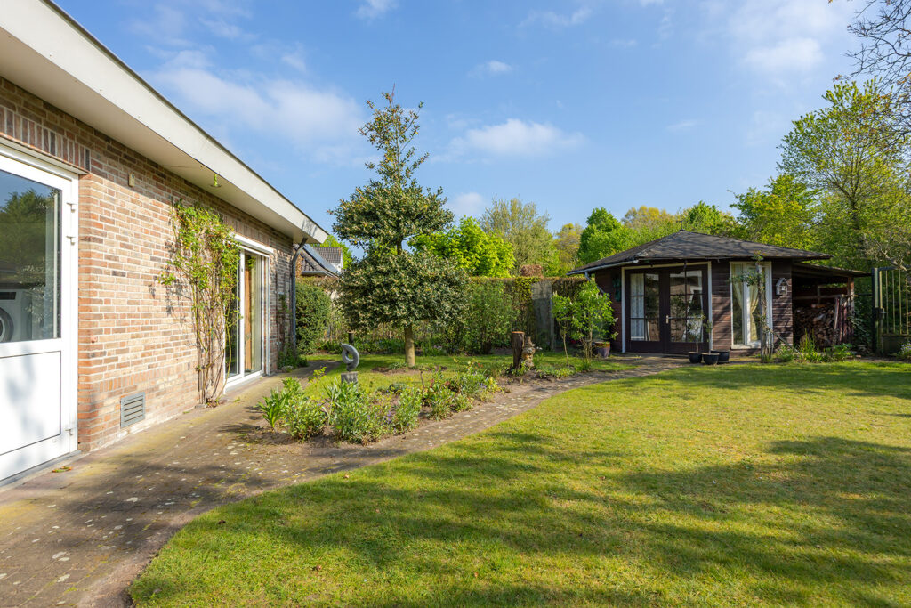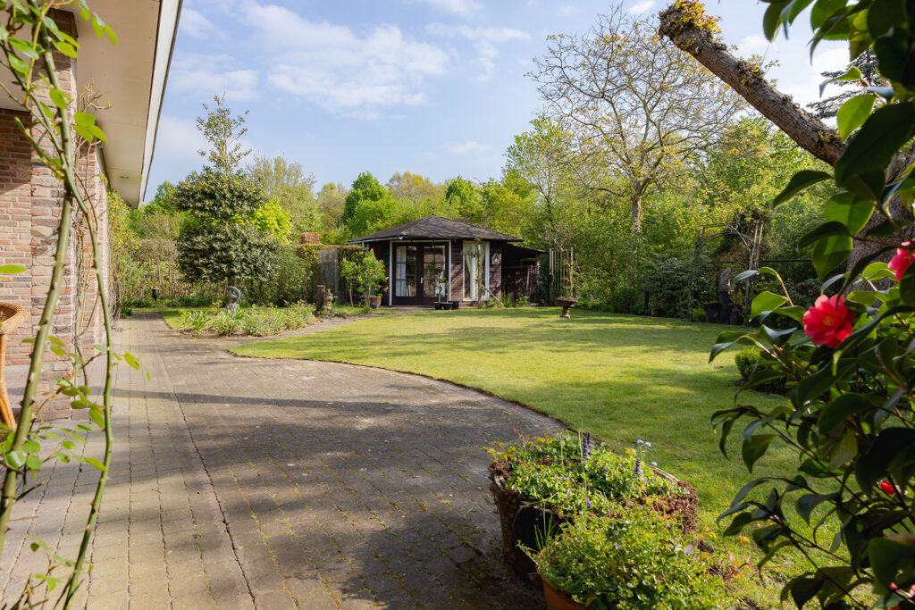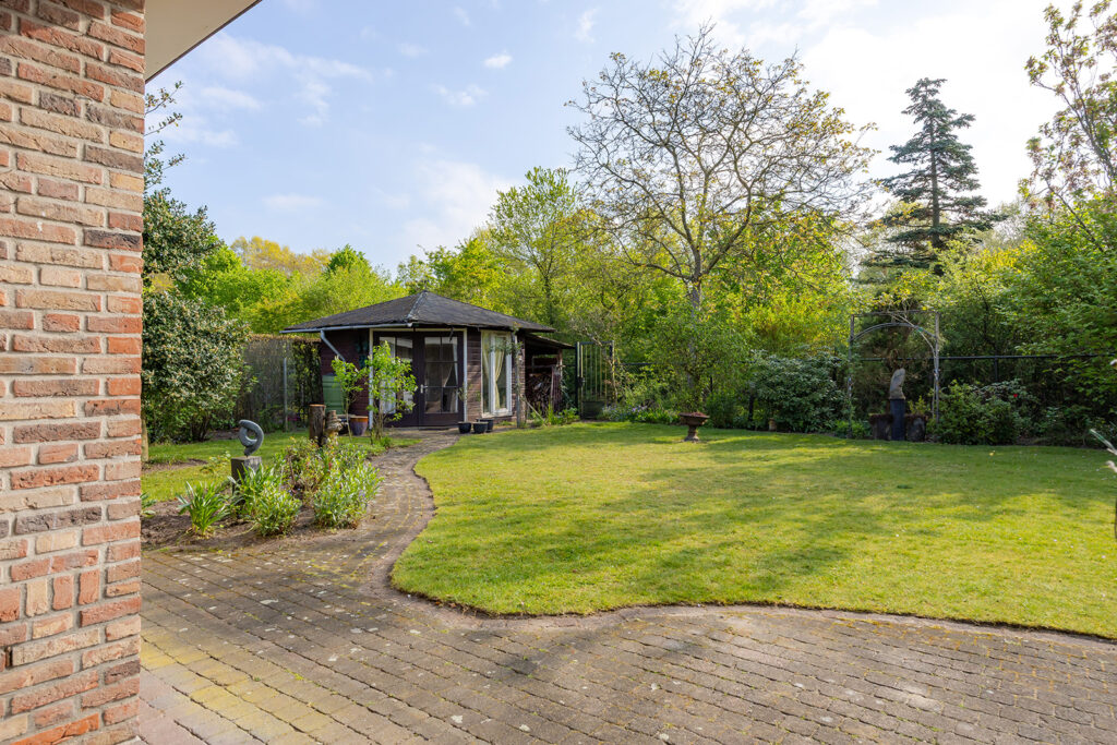 Rondom de woning ligt een tuin die optimale privacy biedt. Een riant groot perceel met eventueel nog mogelijkheden voor uitbouw. De tuin is voorzien van een vrije achterom, een tuinhuis en is volledig omheind met een hekwerk.