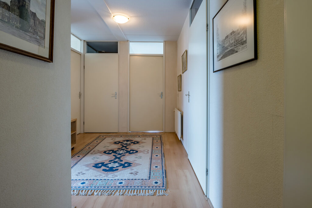 Mooie ruime hal met meterkast (7 groepen). De hal is voorzien van spachtelputz wanden en een laminaat vloer, doorgelegd in nagenoeg het gehele appartement met uitzondering van de badkamer, toilet en de inpandige berging.