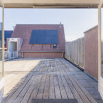 Het appartement beschikt over een prachtig riant deels bestraat en deels bevlonderd (dak)terras van maar liefst 87 m2. Het terras is toegankelijk vanuit de woonkamer en deels overdekt en de overkapping wordt nog verlengd met een elektrisch bedienbare zonneluifel over nagenoeg de gehele breedte van het terras. Het terras is gelegen op het zuidoosten en de mogelijkheid is aanwezig voor het plaatsen van een houten tuinhuis of een overkapping aan de achterzijde zodat. Er is gedurende de dag zon en schaduw te vinden.