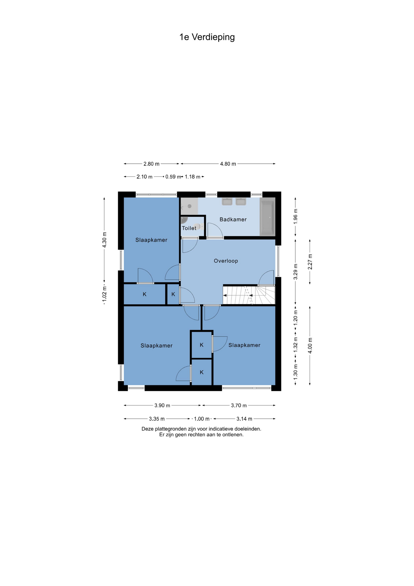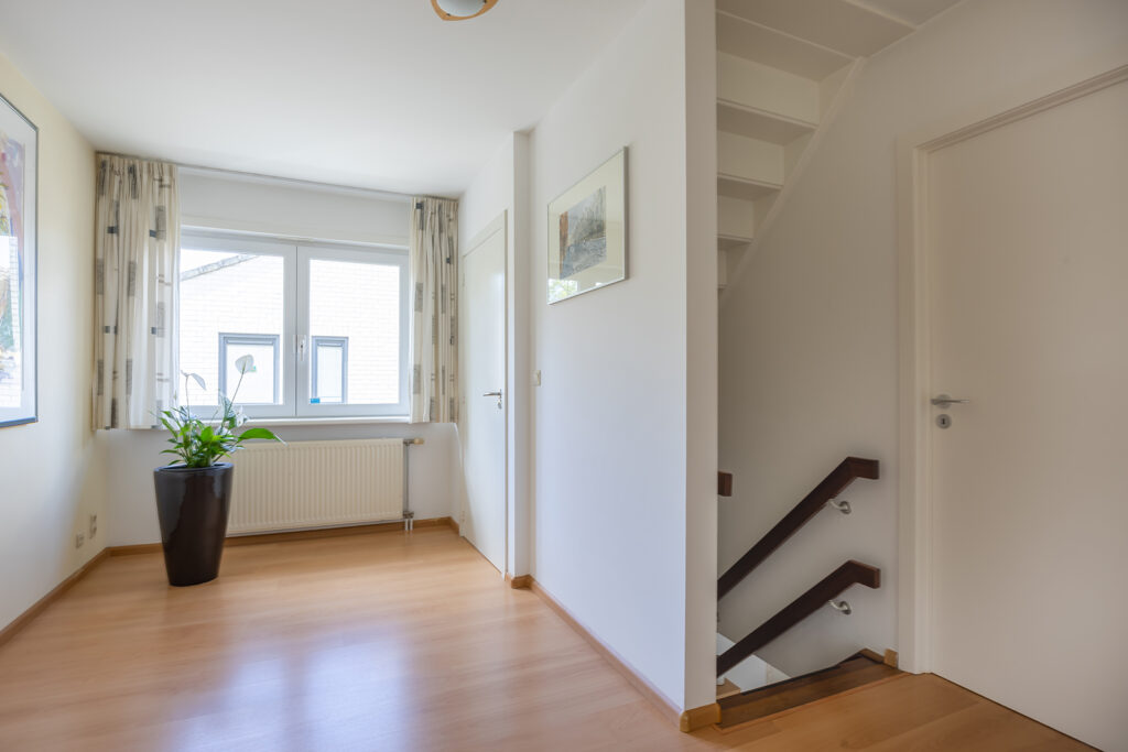 Via een vaste hardhouten trap in de hal zijn de ruime overloop, badkamer, inbouwkast/linnenkast op de overloop en 3 fijne royale slaapkamers bereikbaar;