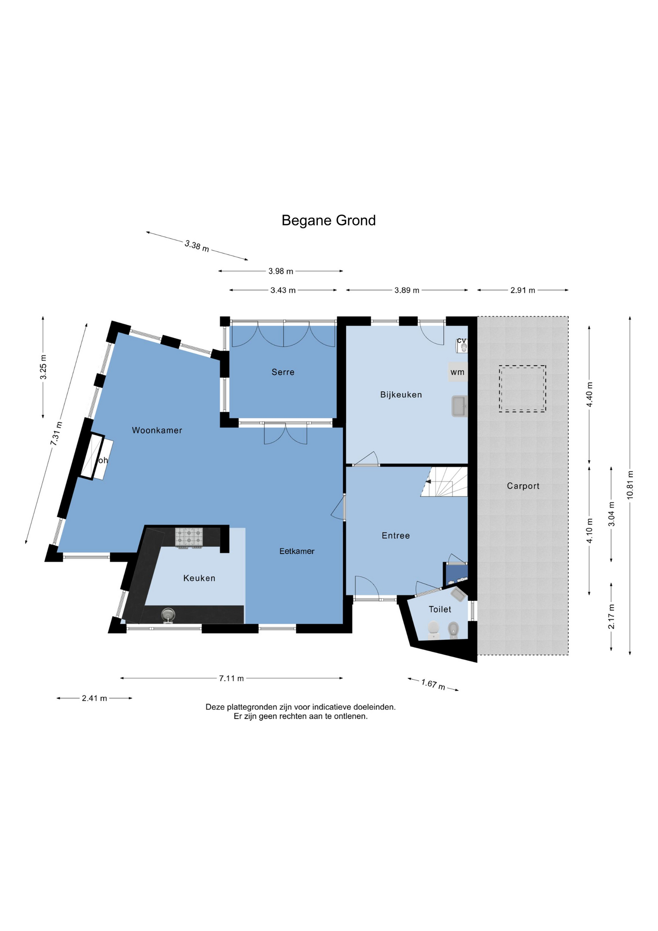 - Carport en oprit bieden tenminste plaats voor 2 auto’s en aan de voorzijde van de woning is een 3e parkeerplaats te gebruiken.