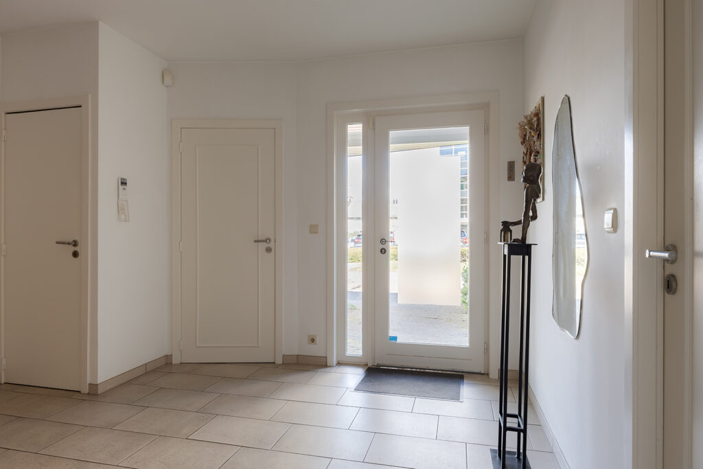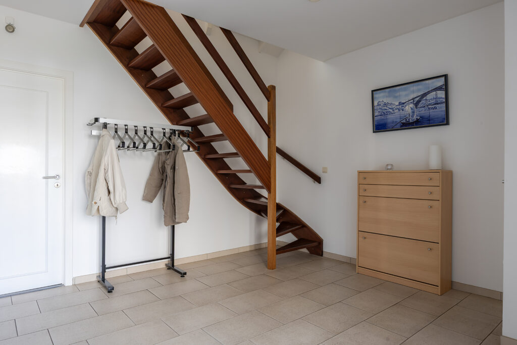 Een mooie zeer ruime entree voorzien van een tegelvloer met vloerwarming, garderobe en een hardhouten trapopgang naar de 1e verdieping.