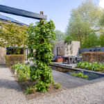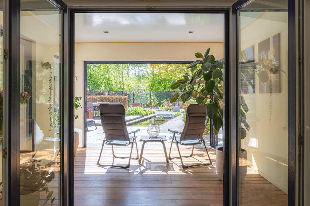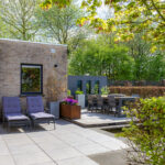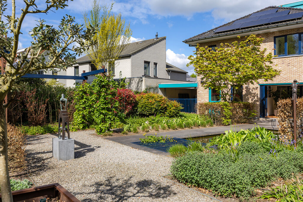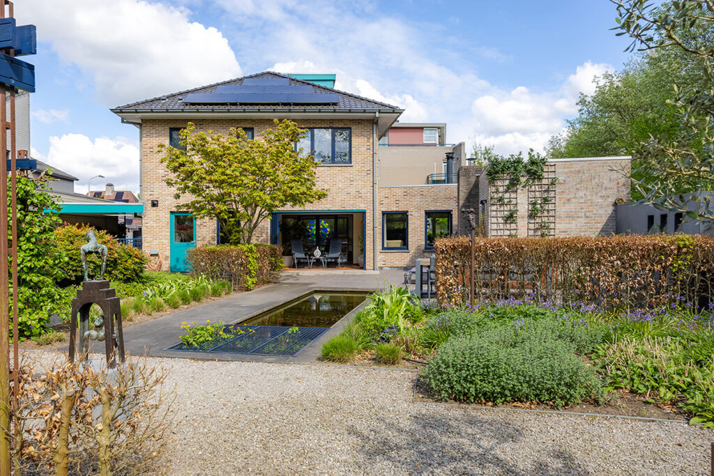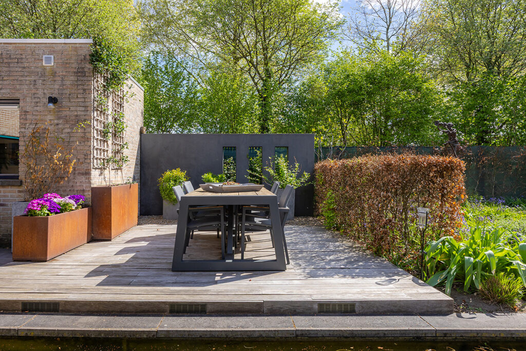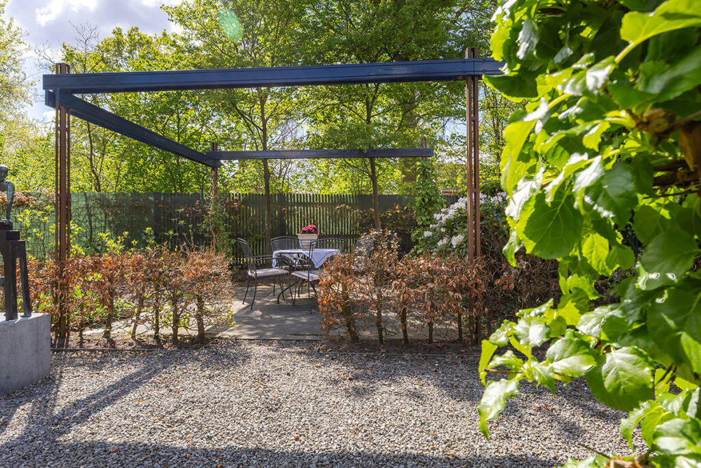 De royale tuin (2018) is onder architectuur aangelegd en ligt rondom de woning, waardoor je overal kunt genieten van rust en privacy. Het perceel is met veel zorg ingericht en biedt meerdere terrassen, een vijver en een pergola, waardoor er altijd wel een fijne plek is om buiten te zitten. Het fraai terras is betegeld met een luxe keramische terrastegel.