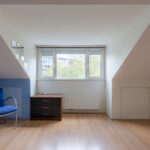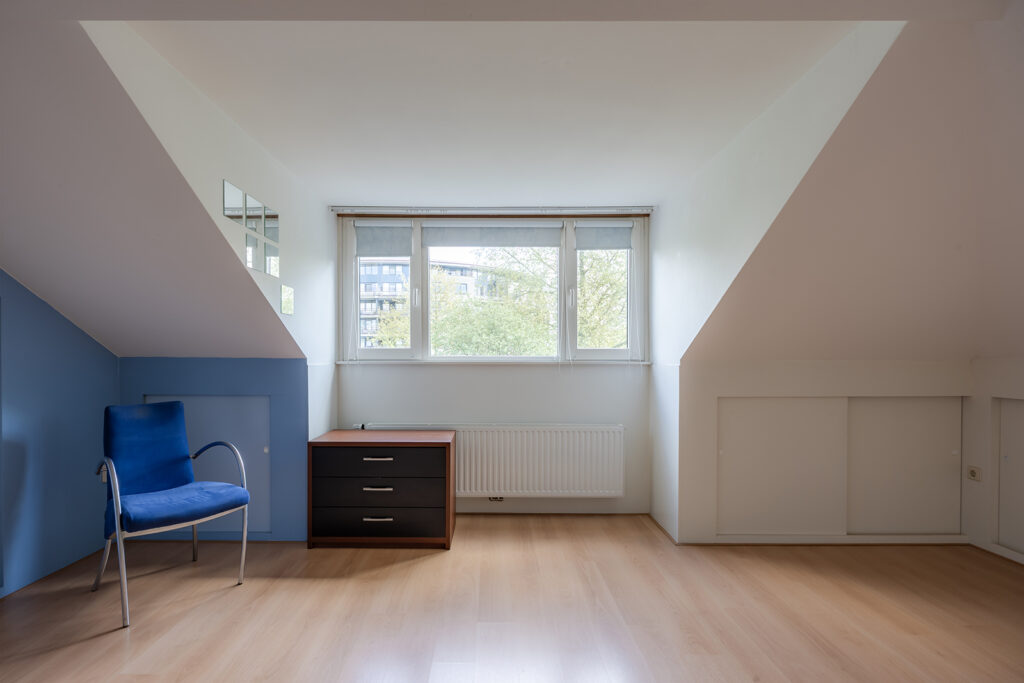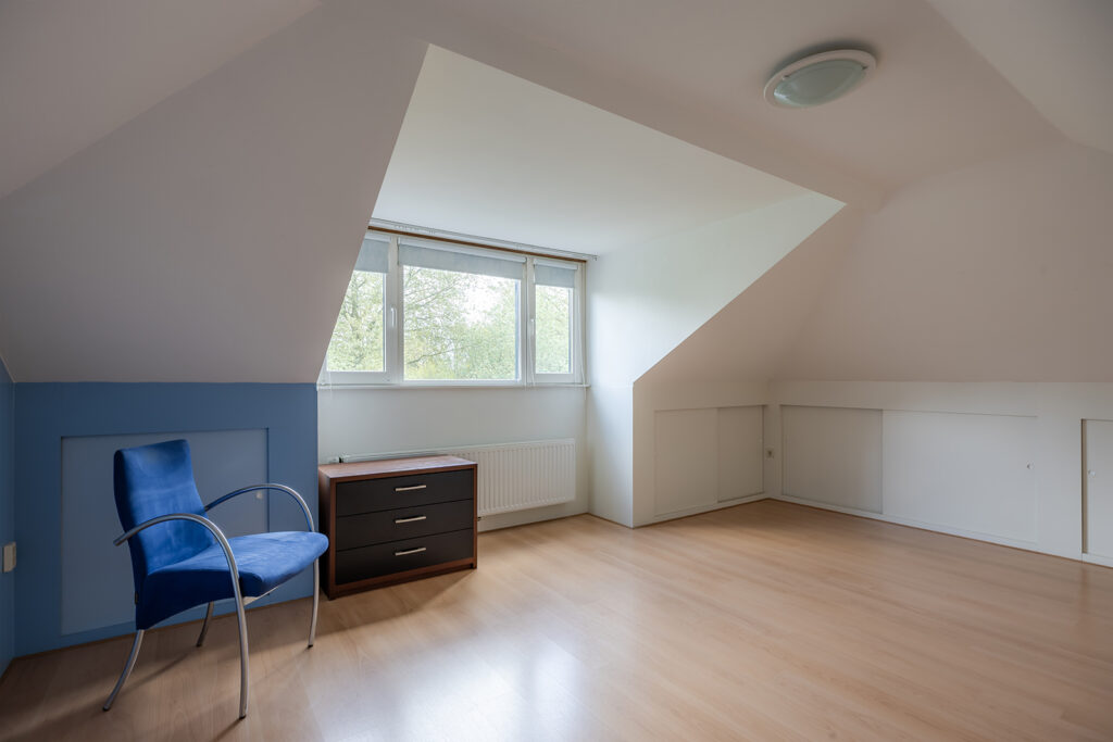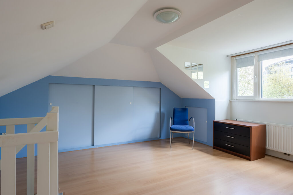Middels vaste trap op de overloop is de 2e verdieping bereikbaar; een mooie ruime 4e slaapkamer met dakkapel. Onder de schuine kanten is nog zeer veel bergruimte aanwezig en dat is keurig afgesloten met schuifpanelen.