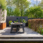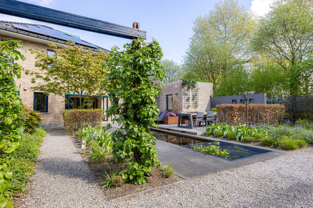 De beplanting is gevarieerd en goed op elkaar afgestemd, wat zorgt voor een verzorgd en groen geheel. Dankzij de opzet en het volwassen groen is er geen inkijk en ervaar je hier veel privacy.