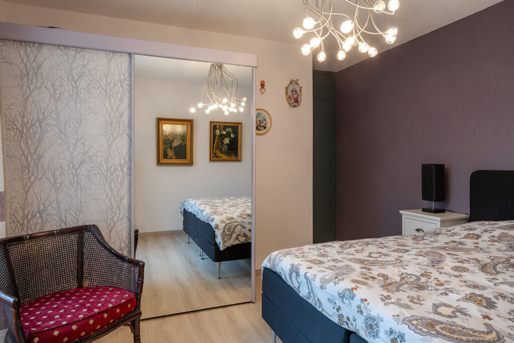 De masterbedroom is voorzien van linnenkast (blijft achter) en idem dito afgewerkt.
